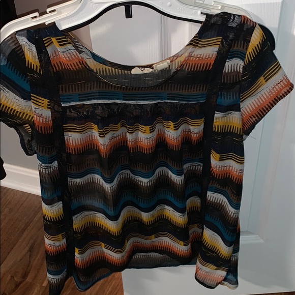 Cute top with colors. It is see through but if you where with a black tank top underneath it is very cute!