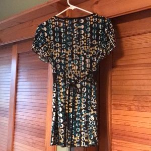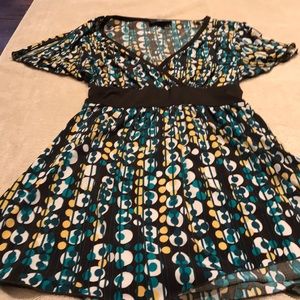 Summer top that has a thin tie in the back. Has split flutter sleeves. Slightly worn.