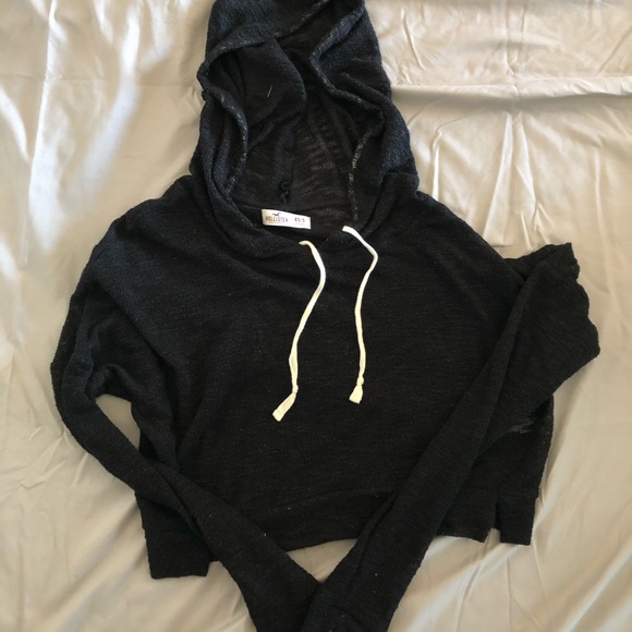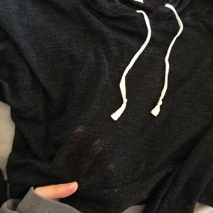 This top is black, long sleeved, with a hood and strings! It is kind of sheer, but looks adorable with a bralette or bandeau. It is in NEWER condition. Looks adorable with jeans or leggings