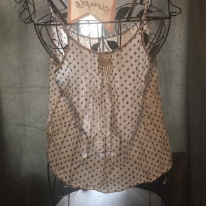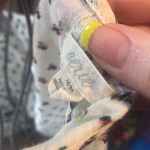 A white tank top with patterns of flowers.