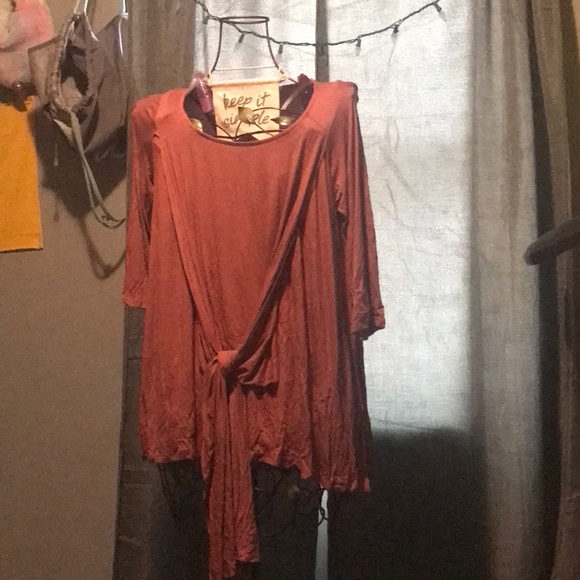 A 1/4 sleeve top. Is to be tied in the front. NWT but has a small rip can be fixed easily. Very flowy.