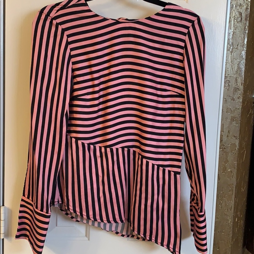 Pink and black striped blouse