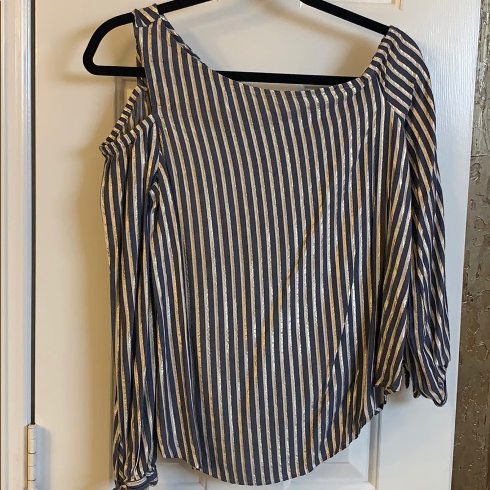 Metallic striped cut out shoulder top