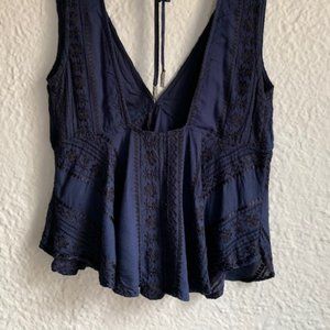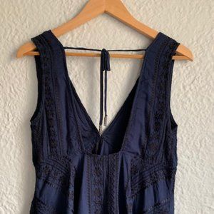 Timeless floral embroidery, flowy empire waist, and a sexy open back with silver beaded tassels.