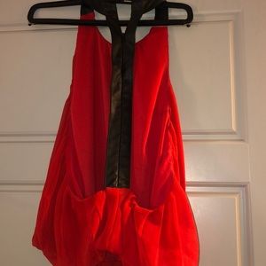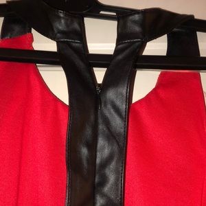 Blouse top open back Red end black leather