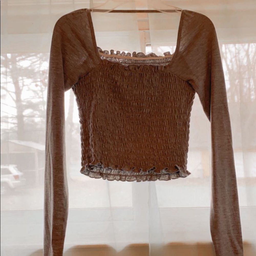 Scrunched design grey cotton top. Long sleeve. Cute for summer. Size XS.