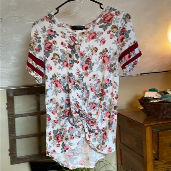 Adorable floral print ,long in the back short in the front,super cute knot in the front🌸🌺