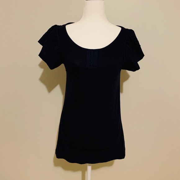 Navy blue top with ruffle sleeve