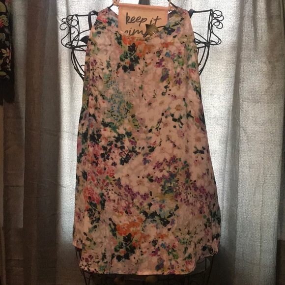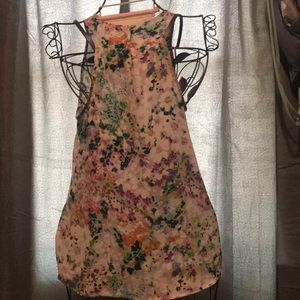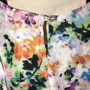 A multicolored floral tank top w button in back. Very flowy.