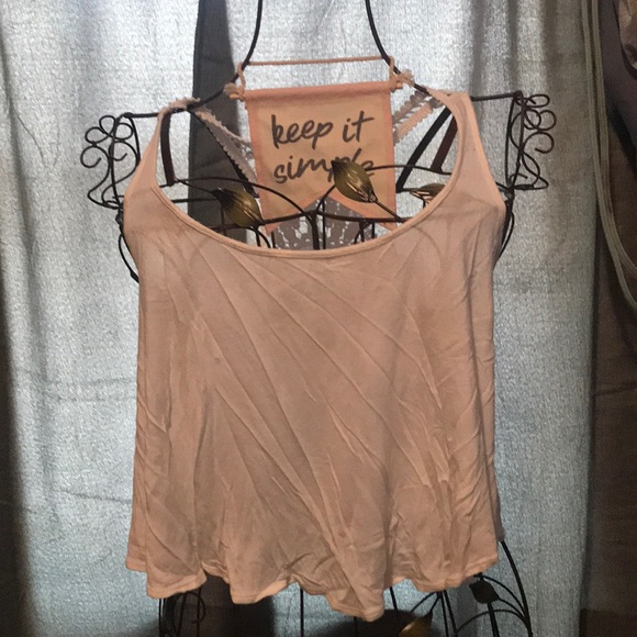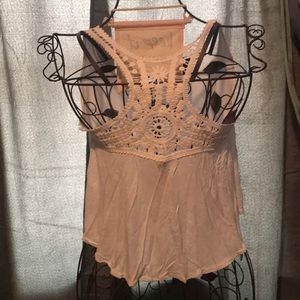 A white cropped tank top with a partial lace back. Very cute for summer.