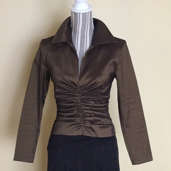 This Formal Top has Back Zipper, Gathers in the Front, 62% Rayon, 32% Polyester, 6% Lycra Excellent Condition