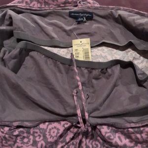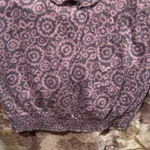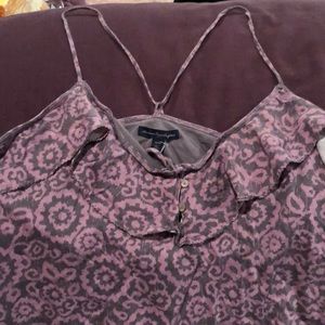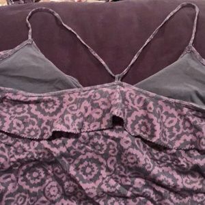 Grey/lt. purple cotton top with tube top bra. Peplum all around with spaghetti strap over shoulders and banded waist.