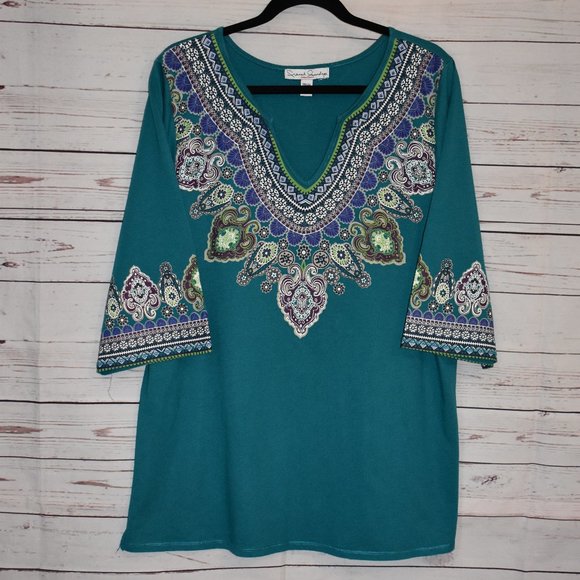 French Laundry Women's top. 3/4 wide sleeve. 60% cotton, 40% polyester. Size 20/22. Great condition!