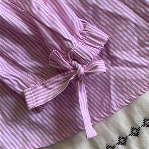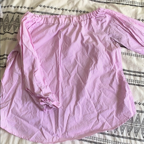Pink white strip off the shoulder top, long sleeve, bow ties on sleeve bottom