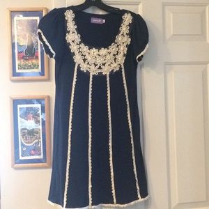 Excellent condition top navy blue with daisies Length is 32 inches Armpit to armpit is 17 inches Can be worn as a dress too