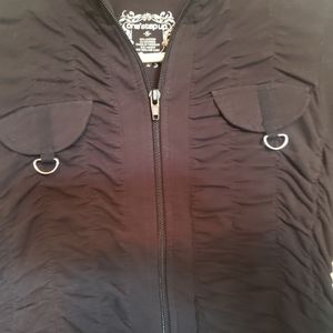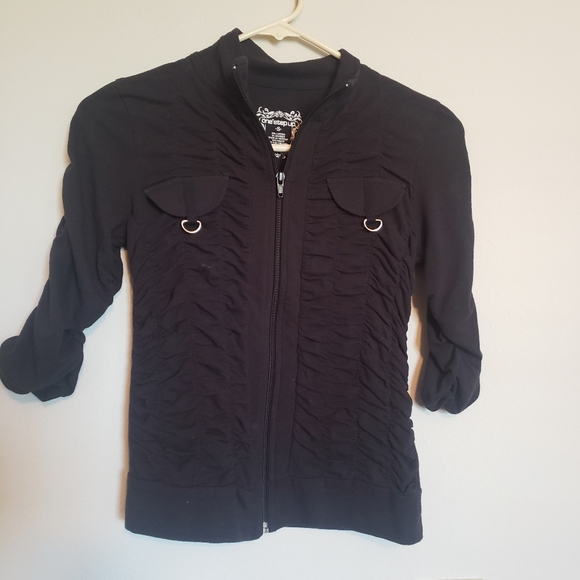 One Ste Up brand black zip up shirt. Very early 2000s. Never worn. Still new. Ruched sleeves and ruched body. Smoke free pet free home