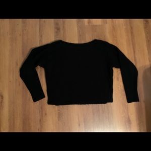 Black soft sweater, robbed detail along the edges, small slit on sides