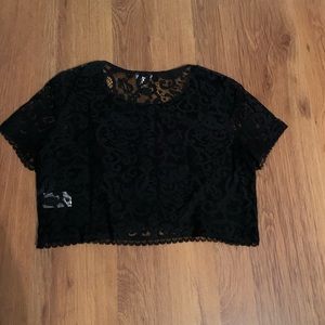 Black lace crop top, sleeves and back are see through, the front is lined, never worn
