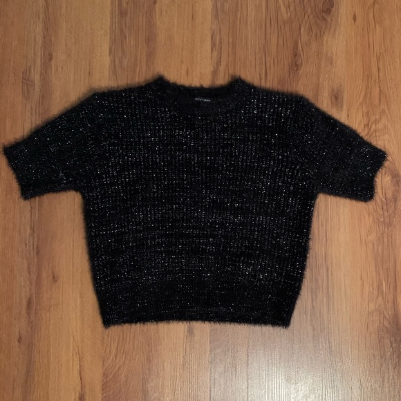 Fuzzy fitted crop top, silver detailing, never worn