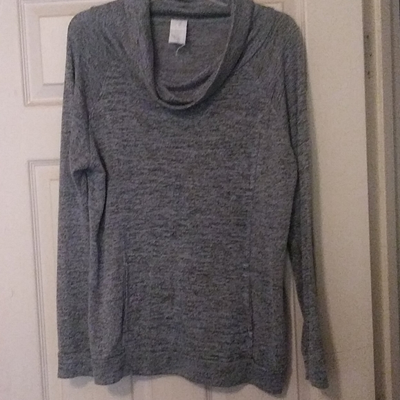 Baby blue and black top with pockets in the front very thin but very warm only wore once