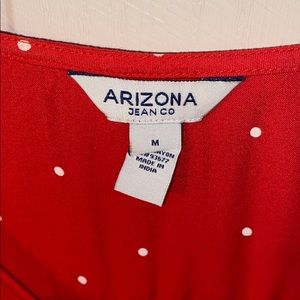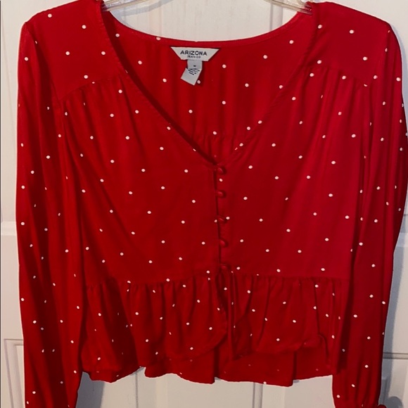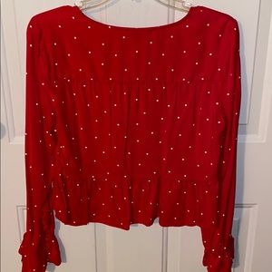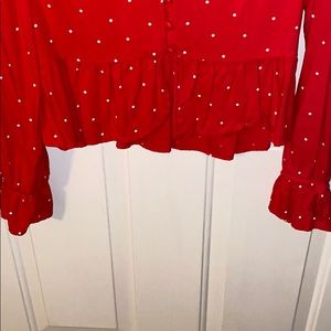 Super cute red and white polka dot shirt with tie at waist .. wore once for Valentines Day no stains no rips