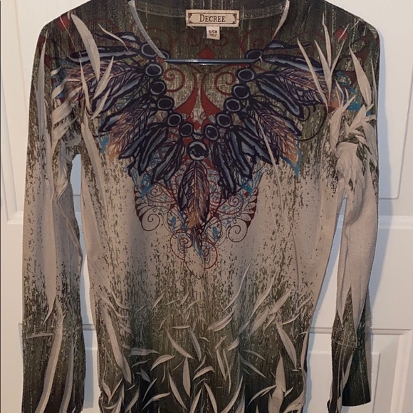 Tribal looking multi colored long sleeve tunic top .. great condition