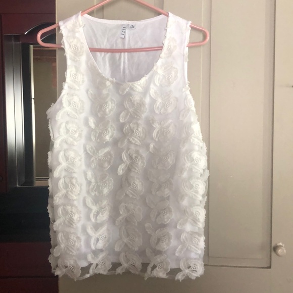 White T-shirt material w lace overlay in front never worn