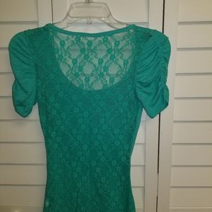 Teal green slip over shirt with lace on back excellent condition