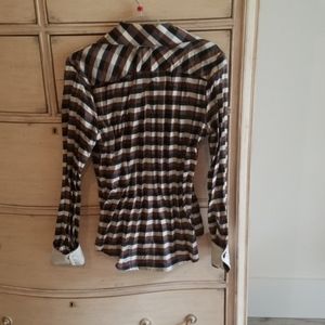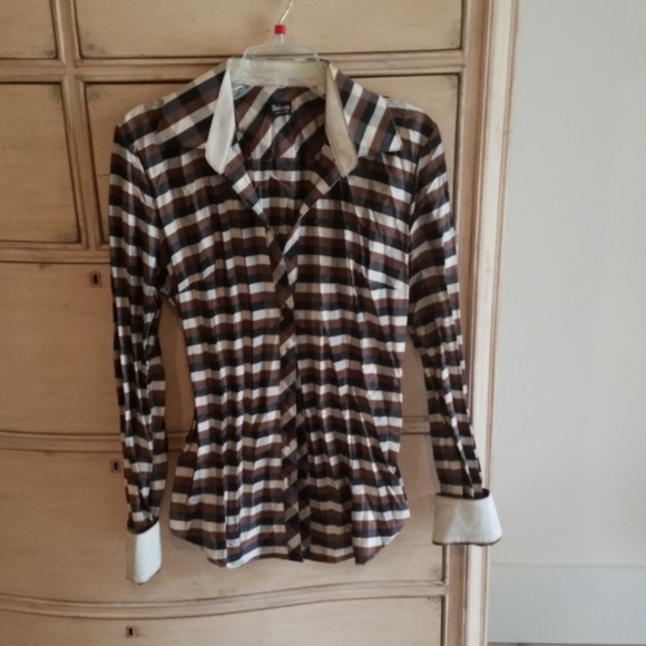 Black, brown and cream checkered top with cream cuffs and collar, worn once, very good condition.