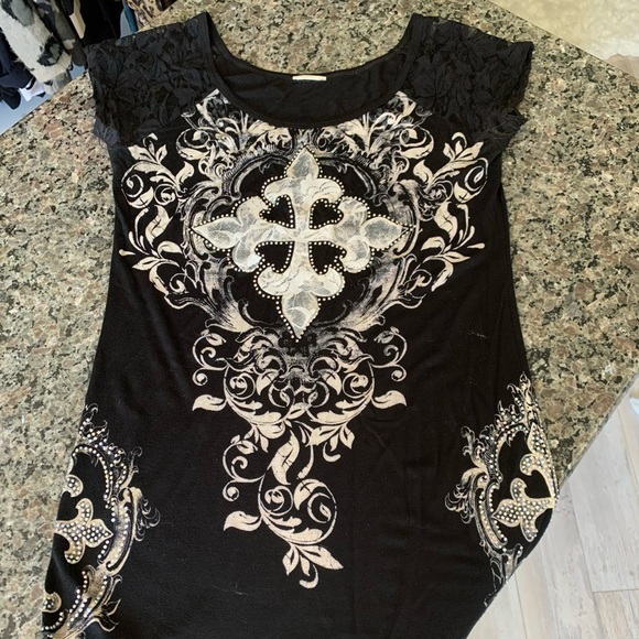 Short cap sleeve top, lace cap Sleeves embroidered fluer di les
