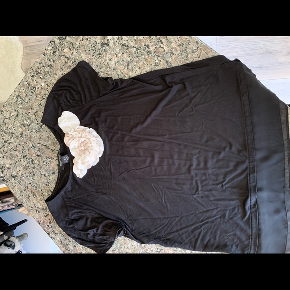 Black top with a decorative flower in white great in the summertime with white or black shorts or jeans whatever you choose