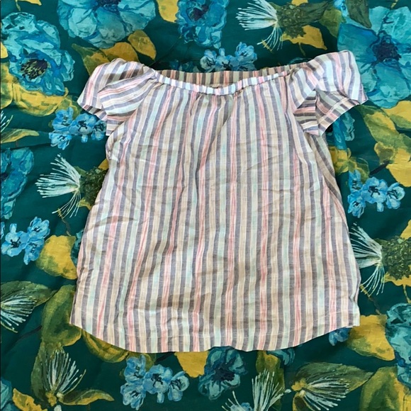 Striped off the shoulder top with pockets. Never been worn only to take this picture!
