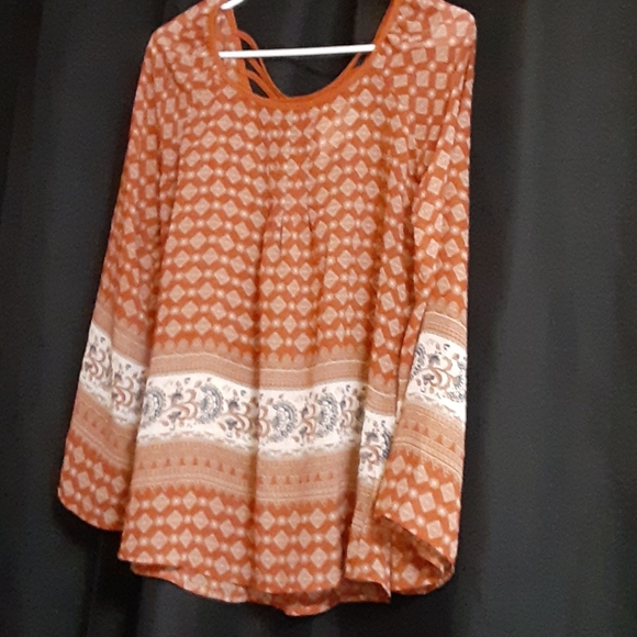 Burnt orange size small, sheer top by sweet journey.