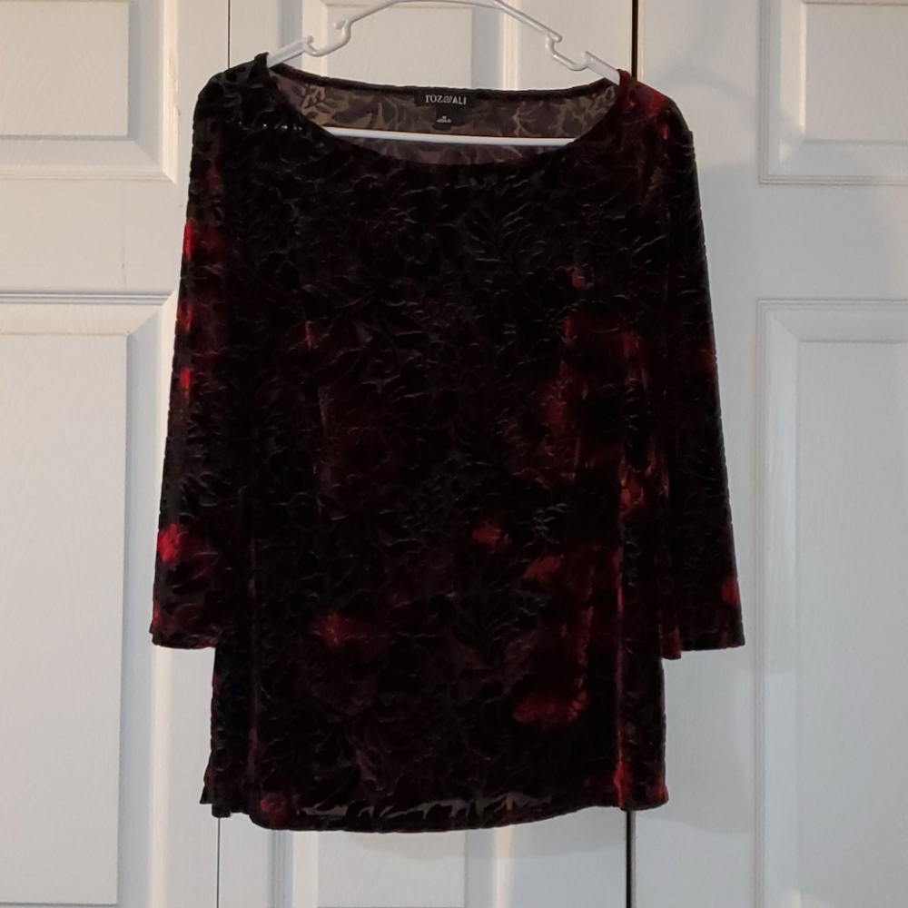 Black, kind of see through, with rose/wine color design.