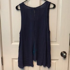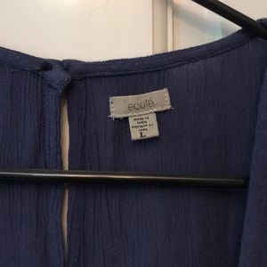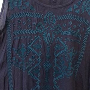 Gauze-ish material. Great for summer. Open slits in back and breezy