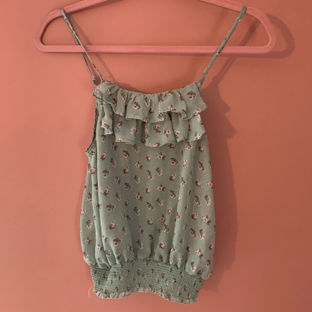 Green sheer flowered top