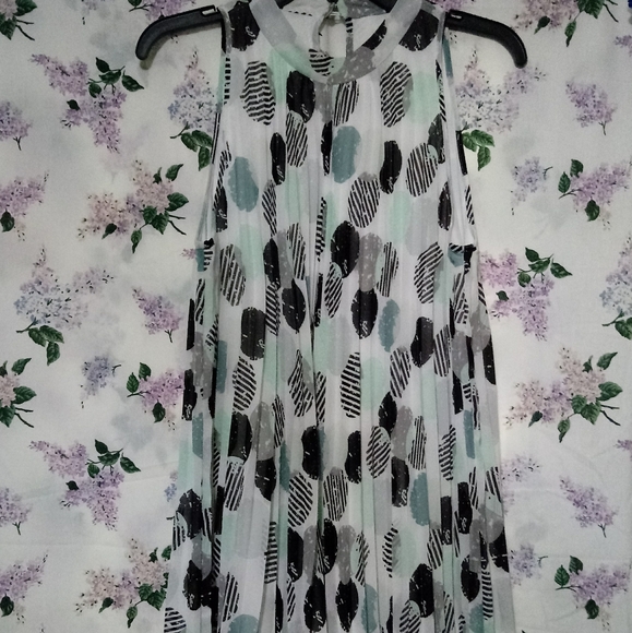Mint green, gray and black polka dot top, it could be a dress on a short person. Smoke and pet free home.