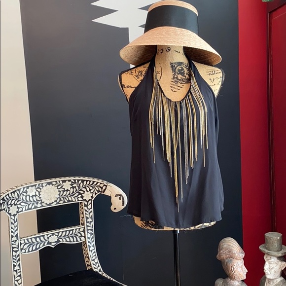 Elegant sexy top for glamour event, new, newer worn,wow your man! 100% polyester but feels like silk.. Looks very expensive:)! fits size M,L
