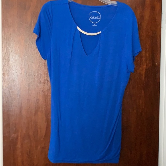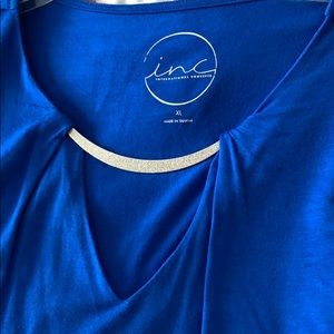 Royal blue lightweight capped sleeve blouse by Inc with a sparkly neck line jewel attached. NWOT never worn