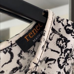Black and white sleeveless top. Longer in the back than front. Great for day or night.