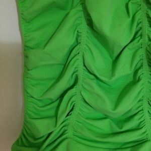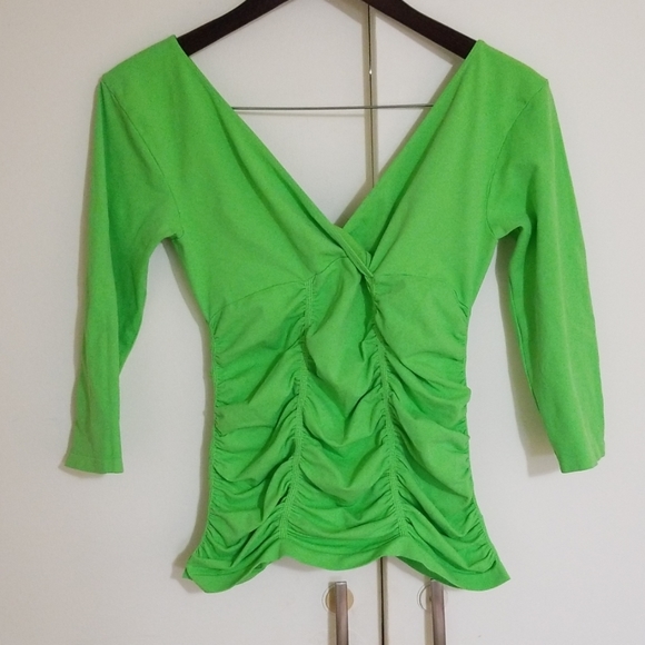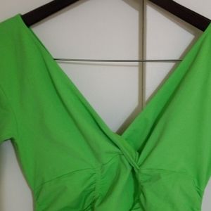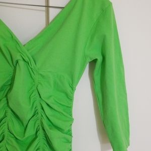 Lime green stretch. Rooshed deep v front n back. 3/4sleeve. Very flattering