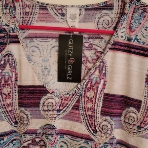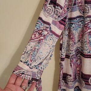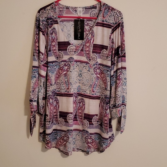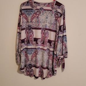 Blouse with oval rounded neck with paisley pattern. 92% polyester 8% spandex never been worn..still has tags