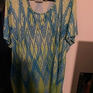 Colorful top with design back bottom is silky material