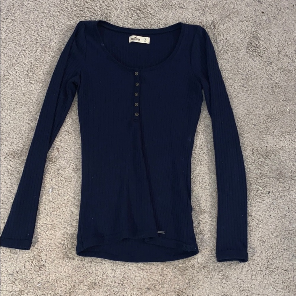 Navy blue long sleeve tight fitting top with buttons