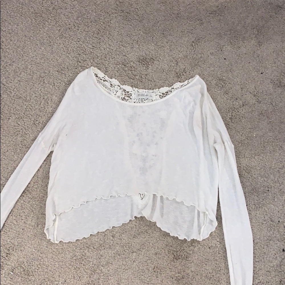 Long sleeve sweater top with lace pattern in the back