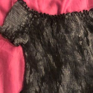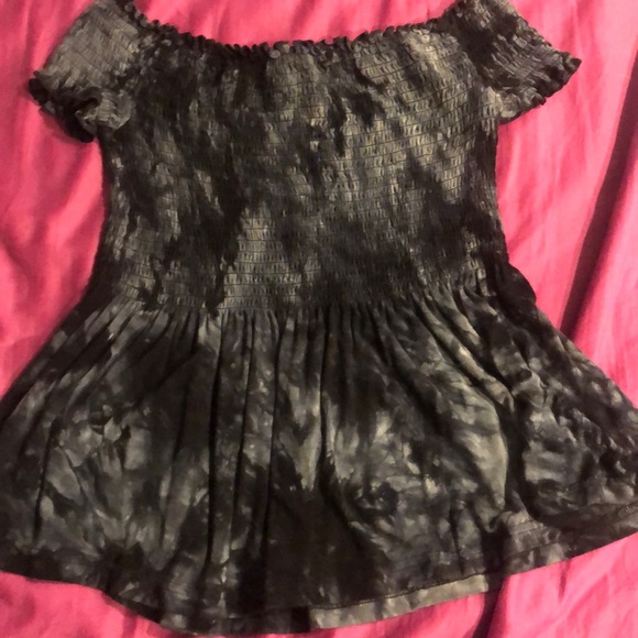 Blue and black marbles shirt with a fitted top and a flowy bottom