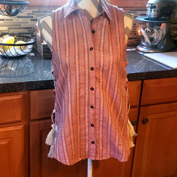Sleeveless summer top brand new with out tags the color is like a maroon.