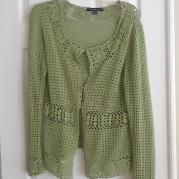 Cotton crochet cover up for tank tops, camior swim wear. Long sleeves . Color is a lime green
