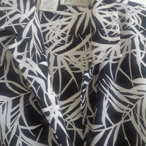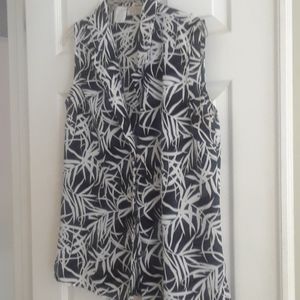 Polyester black & white ferns print. Sleeve less top. Can be worn open with vest or cami or buttoned down. Size 10. Atreective with black ir white pants