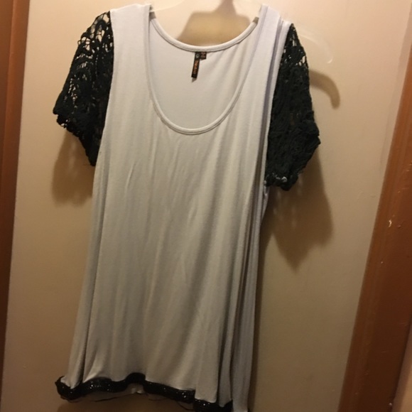 Top with short knit sleeves and embellished hemline